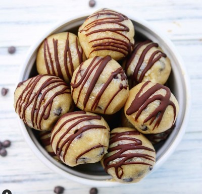 - Roll ping-pong-sized balls and place on a parchment paper lined tray. Drizzle melted chocolate over the top and place in the freezer. Defrost 5 minutes before serving.