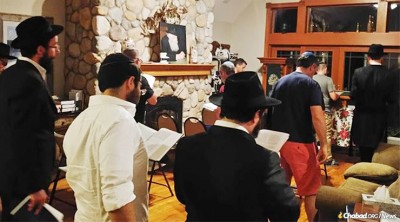 The Halachot governing Minyan require that all ten men assemble together in the same room. The Shulchan Aruch rules that someone standing outside the room of the Minyan may answer the Devarim SheBikdusha, such as Kadish and Barchu, even though he doesn’t count towards making the Minyan. This is on condition that there is no separation of garbage or putrid items that would serve as a barrier. The question arises as to whether someone praying in an adjacent room to the Minyan is considered as having prayed Tefila B’tzibur (communal prayer). This issue is discussed by Chacham David in his Halacha Berura. There he rules that as long as the person can maintain eye contact with the Minyan, he is considered a part of it. He cites the opinion of the Radbaz as quoted by the Hida in his Birkei Yosef and his Machzik Beracha that even if he cannot see the Minyan because his view is obstructed, nevertheless, he is still considered a part of it.