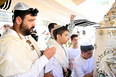 The children then toured the newly installed Western Wall Heritage Foundation center, enjoyed a festive lunch in the tunnels, and were joyfully danced down to the Kotel. The boys received their tefillin and were called up to the Torah, while the girls held a moving candle-lighting ceremony. Members of minority communities visited their respective holy sites nearby, each honoring their traditions.