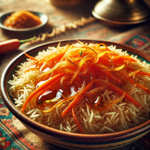 Oshi Zardak (Carrot Rice with Onion Oil)