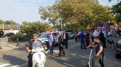 On Monday afternoon, August 16, family and friends of Refael Mulokandov Cohen, Margarita Mulokandov, and Yosef Mulokandov danced and celebrated in a festive parade along Vleigh Place from 138th Street and 77th Avenue in Kew Gardens Hills. The musical procession included community members and those affiliated with Congregation Od Yosef Chai. The merriment continued outside of Simcha Palace on Main Street and followed by a festive meal. Much thanks and appreciation are due to Queens Borough Safety Patrol – Shmira and Community Affairs Police Officer Peter A. Capozzi who facilitated a safe march.