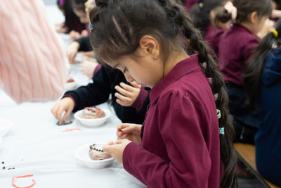The 7th grade girls put together a beautiful dance, representing the excitement we have for the coming of Shabbat. The girls then decorated doughnuts to look like clocks, tying this month's theme together.