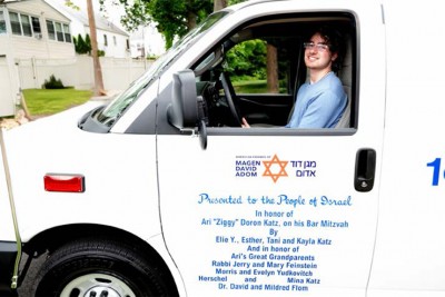 to Magen David Adom After October 7 AttacksTo mark a Bar Mitzvah in the most meaningful way, the family of Ari “Ziggy” Doron Katz dedicated a brand-new ambulance to American Friends of Magen David Adom (AFMDA) in his honor. Ari’s parents, Esther and Teaneck Deputy Mayor Elie Y. Katz, along with his sister Kayla and older brother Tani—who was pictured smiling from the driver’s seat—joined together to make the special presentation last week.