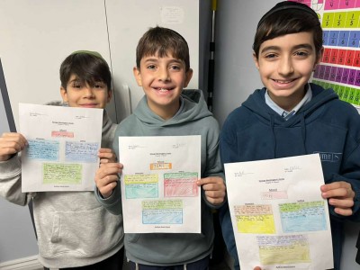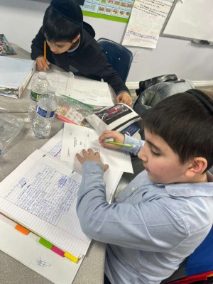 Yeshiva Sha’arei Zion fifth-grade students are diving deeper into reading by analyzing how setting, an author’s word choice, and character development work together to create mood. Through close reading and guided discussion, students explore how descriptive language, character actions, and surrounding details shape the emotions and atmosphere a story conveys.