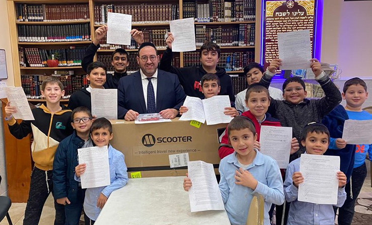 The Cheder Moshe Raya Mehamina welcomed Rav Noach Isaac Oelbaum, marah d'atrah of Khal Nachlas Yitzchak to deliver brachot to the boys. The rav was