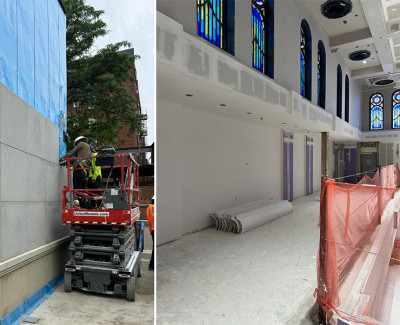 Судя по информации, полученной нами из осведомлённых источников, ныне полностью завершены работы в помещении бейсмента, где предстоит заключительный этап, когда зал для торжественных и общественных мероприятий окончательно приоденется в самые нарядные аксессуары. Стоит на мгновение прикрыть глаза, как тот час видится блеск зажженных великолепных хрустальных люстр, и празднично накрытых банкетных столов с нарядными гостями. Давайте мысленно протянем руки и дотронемся до этого замечательного убранства, которое вскоре предстанет наяву, свидетельствуя о том, что каждое богоугодное дело непременно имеет желанное завершение.