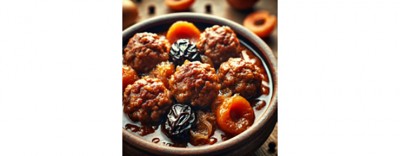 Juicy lamb or beef meatballs simmered in a rich sauce of onions, apricots, and prunes — a dish of abundance.