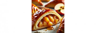 DALL·E 2025-09-17 00.18.05 - Close-up of Bichak-e Tufah, Bukharian apple turnovers for Rosh Hashanah. Golden, flaky crescent-shaped pastries are shown, with one broken open to rev.webp
