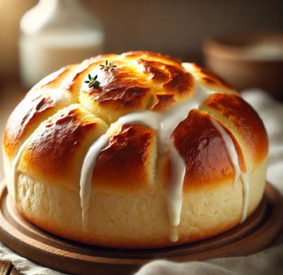 Soft, buttery bread brushed with warm cream — a cozy treat for breakfast or afternoon tea.