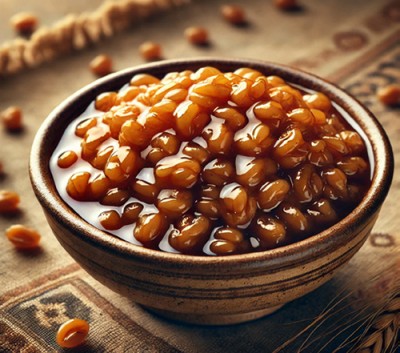 A slow-cooked dessert made from wheat berries and honey — warming, earthy, and nostalgic.