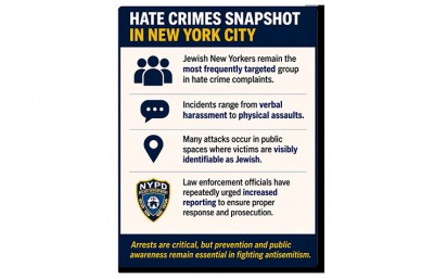 In a statement, District Attorney Katz emphasized both the severity of the attack and her office’s commitment to prosecuting hate crimes: “The defendant is indicted on the charge of assault as a hate crime. As alleged, he yelled hateful slurs before assaulting a rabbi completely unprovoked. Anti-Jewish bias still accounts for a significant share of hate crimes in our city, and my office will continue to take these cases with the utmost seriousness.”