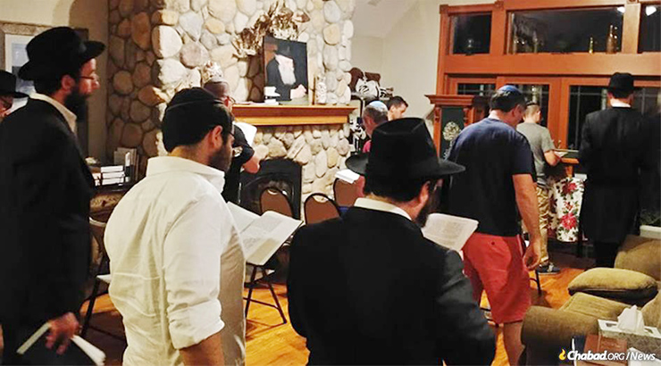 The Halachot governing Minyan require that all ten men assemble together in the same room. The Shulchan Aruch rules that someone standing outside the