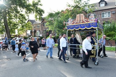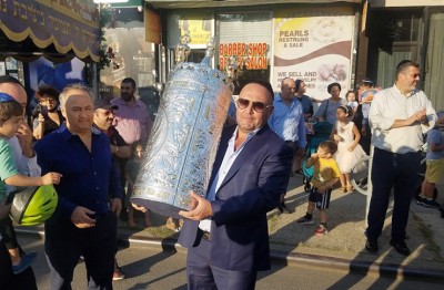 On Monday afternoon, August 16, family and friends of Refael Mulokandov Cohen, Margarita Mulokandov, and Yosef Mulokandov danced and celebrated in a festive parade along Vleigh Place from 138th Street and 77th Avenue in Kew Gardens Hills. The musical procession included community members and those affiliated with Congregation Od Yosef Chai. The merriment continued outside of Simcha Palace on Main Street and followed by a festive meal. Much thanks and appreciation are due to Queens Borough Safety Patrol – Shmira and Community Affairs Police Officer Peter A. Capozzi who facilitated a safe march.