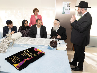 Segal addressed the donor, “Alex, can I tell you what most rehab centers in this country do when they are asked to have a synagogue, a place for services, or Torah? You'll be lucky if the synagogue is the size of a large closet. You'll be lucky if the synagogue is large enough to hold 10 men, and you'll certainly be lucky, very lucky, if the synagogue has a brand new sefer Torah. This community and of course, everyone here at the center, is so indebted to you for the incredible generosity of you and your family, and for having a day like this where we could celebrate our tradition and our heritage at a place as simple as Margaret Tietz.” Alex thanked his wonderful staff and concluded, “We want this place to truly be a community-oriented facility where members can integrate and interact with our residents and make use of this shul.”