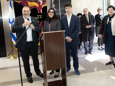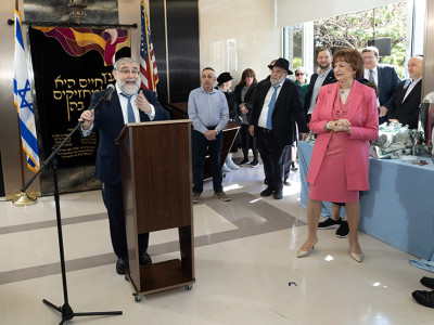 “This has been an amazing experience,” proclaimed Alex, standing alongside his wife Alla and son Benjamin. “I honestly haven't seen it anywhere else!” continued the gracious donor as he described varied communal engagement at Margaret Tietz. Alex referenced his appreciation for the younger generation, represented by talmidim from Yeshivas Chofetz Chaim who ensure Shabbos minyanim at the center’s shul, which was also dedicated at the ceremony, and high school students from Shevach High School who enjoy engaging with residents on their visits to the center. Alex spoke of the communication and engagement seen within the Margaret Tietz community as the different generations share stories and develop emotional attachments each week. “Young kids from our local yeshivahs coming here every week are amazing.” Alex thanked the attendees of the Shabbos Shacharis minyan that sees some three-dozen worshipers and encouraged the re-launch of a daily minchah minyan, as well as usage of the shul for communal functions and celebrations.