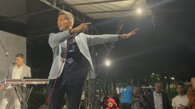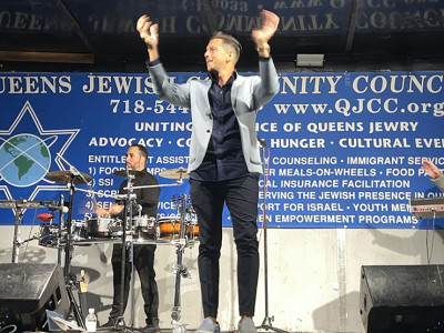 Jewish music icon Avi Perets was back for a second year running as the headline concert for the annual summer program run by the Queens Jewish Community Council entitled Jewish Music Under The Stars. Once again Cunningham Park hosted a few hundred Queens residents this past Wednesday evening, August 21. Participants joined the festive atmosphere and enjoyed the classic tunes of the veteran Mizrachi musician along with his band, including Perets longtime keyboardist Ouri Bitan, Yosef Karavani on the guitar, and a fantastic drummer. The free program included an array of classic and contemporary Jewish songs.