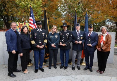 Queens District Attorney Melinda Katz hosted the borough’s annual Veterans Day Observance Ceremony on Thursday, November 6, at the Vietnam Veterans Memorial in Elmhurst Park, located at 79th Street and Grand Avenue in Elmhurst. Beginning at 11:00 a.m., the program brought together veterans, military families, community leaders, local officials, and residents for a heartfelt tribute to the brave men and women who have served the United States with courage and devotion. This year’s ceremony honored four distinguished veterans for their extraordinary service: Sergeant First Class Dominick Pepe of the United States Army, a Vietnam War veteran; Sergeant Major Jackie Wilson of the United States Army Reserve, a veteran of Operation Desert Shield and Operation Desert Storm; Commander Michael Arcati of the United States Navy, an Iraq War veteran; and Specialist Chris Morales Jr. of the United States Army, a veteran of Operation Iraqi Freedom and a valued member of the Queens DA’s Office.