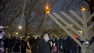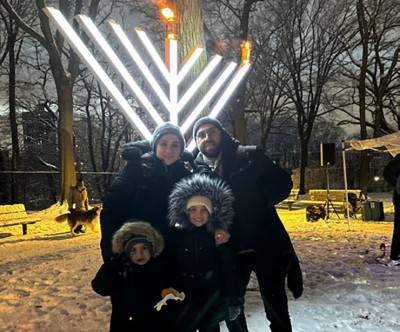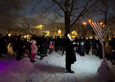 Despite freezing temperatures and snow-covered ground, Hoover Manton Park in Briarwood was filled with warmth, light, and unmistakable Jewish pride on the first night of Chanukah, as more than 250 community members gathered for Chabad of Briarwood’s annual Community Menorah Lighting and Car Menorah Parade under the direction of co-directors Rabbi Dovi and Chani Steinmetz.
