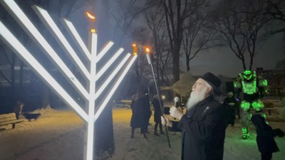 The evening offered something for everyone. Children delighted in meeting Judah the Maccabee and enjoying the interactive mega robot show, while live music added energy and joy throughout the crowd. The highlight came with the public menorah lighting, as flames flickered defiantly in the cold, drawing applause from those gathered.