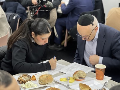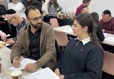 Seated together around the tables, participants explored the week’s parshah through guided sources and thoughtful prompts that encouraged genuine discussion. The learning created a warm, reflective atmosphere, allowing fathers and daughters to engage deeply with the text while sharing insights shaped by both Torah values and personal experience.