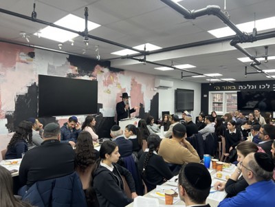 Following the Father–Daughter Learning, Mrs. Zerykier, menahelet, continued developing these themes with the students, highlighting how this sense of arevut extends beyond the family unit. The parshah teaches that responsibility is not limited to immediate relatives, but shapes how we relate to am Yisrael as a whole. Especially over the past two years, this idea has taken on renewed meaning, as communities have felt a deep, instinctive concern for hostages, soldiers, and fellow Jews across the nation, reflecting the teaching of Chazal: kol Yisrael arevim zeh bazeh.