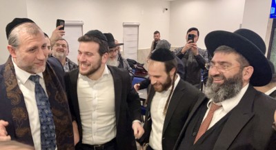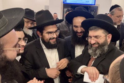 As the evening drew to a close, the atmosphere shifted from quiet reflection to open joy. Men rose from their seats and formed circles around the Rav, dancing together in spontaneous celebration. The singing grew stronger, and several times the microphone was handed to Rabbi Amrami himself, who joined the crowd in song, his voice lifting the room even higher. Long after the formal shiur had ended, participants surrounded the Rav to receive brachot, lingering moments that spoke volumes about the connection formed that night. It was a fitting conclusion to an evening that moved seamlessly from teaching to trust, from words to joy — a living expression of bitachon in motion.