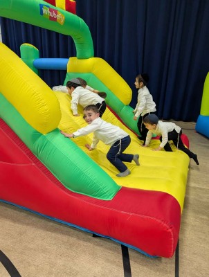 Academically, it was “R Week,” as students explored words beginning with R and strengthened their addition skills through engaging activities. The week concluded with a lively Rosh Chodesh celebration featuring music and bouncy houses.