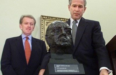 От редакции: 20 января 2017 г. только избраннвй новый 45-й президент США Д.Трамп, переступив порог Овального кабинета Белого дома, вернул на своё обычное место бюст великого британца Уинстона Черчилля. Бывший президент Обама убрал эту реликвию с привычного места и поставил вместо неё бюст Мартина Лютера Кинга.