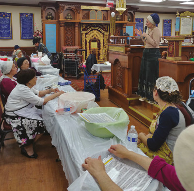 Очередная группа женщин взяла на себя обязательство отныне покрывать голову платком в дни праздников и шаббатов. Элана Абрамова-Ханимова, приветствуя эти порывы, тут же подарила трём из них великолепные изделия подобного рода.