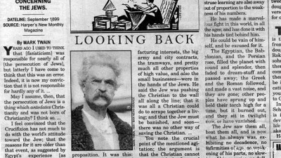 Среди них я приметила сборник статей Марка Твена в невыразительно сером переплете. Перелистав, я споткнулась о заглавие одной из них- Concerning the Jews -- “Относительно евреев”.