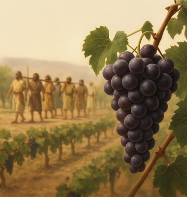 In Parashat Shelach, this episode is described as follows: Moshe sent them to scout the Land of Canaan, and he said to them, “Go up this way in the south and climb up the mountain. You shall see what [kind of] land it is, and the people who inhabit it; are they strong or weak? Are there few or many? And what of the land they inhabit? Is it good or bad? And what of the cities in which they reside — are they in camps or in fortresses? What is the soil like, is it fat or lean? Are there any trees in it or not? You shall be courageous and take from the fruit of the land.” It was the season when the first grapes began to ripen (Bamidbar 13:17-19).